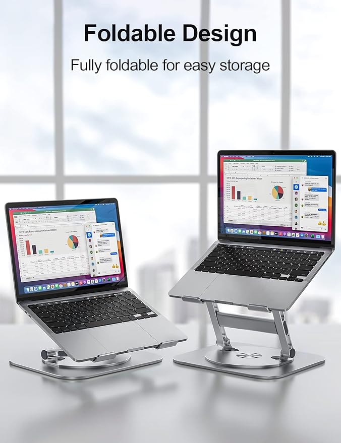 - 360 Rotation Adjustable —The adjustable laptop stand with a premium axis connected to the stand base allows you to swivel your laptop to any angle to have an optimal gestures and viewing angle.