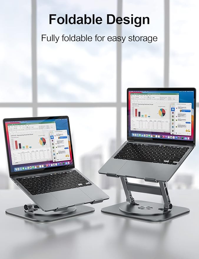 - 360 Rotation Adjustable —The adjustable laptop stand with a premium axis connected to the stand base allows you to swivel your laptop to any angle to have an optimal gestures and viewing angle.
