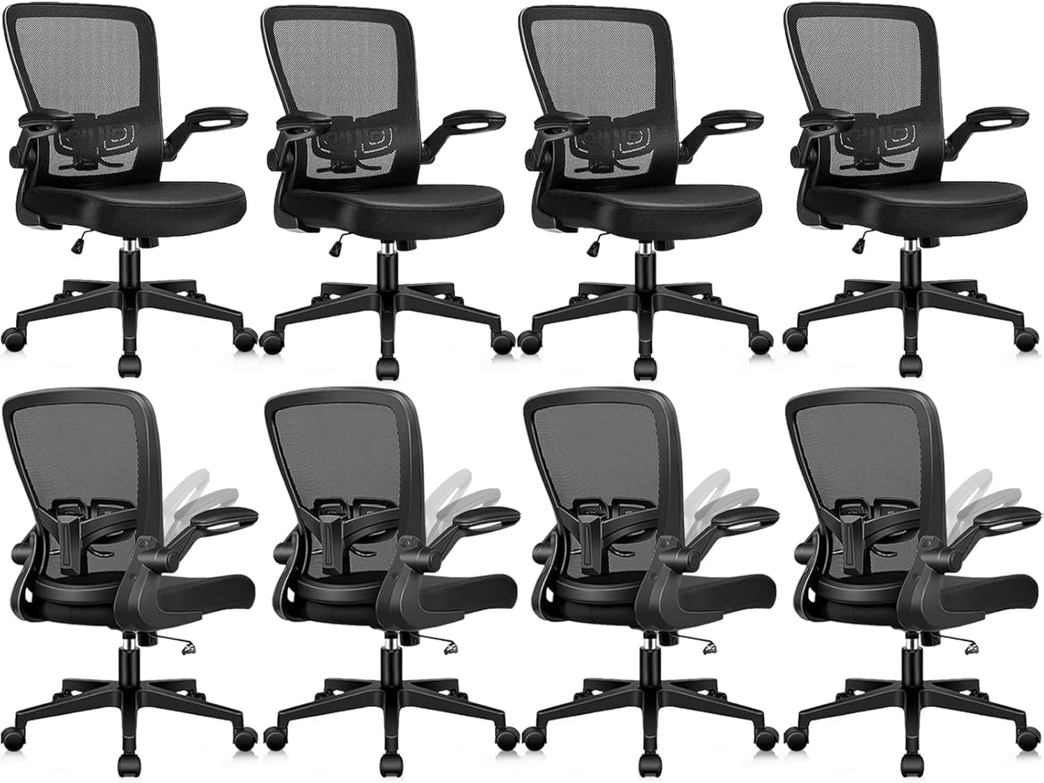 Desk Chairs with Wheels, Ergonomic Mesh Office Chair Adjustable Height and Swivel Lumbar Support Home Office Chair with Flip Up Armrests (8PK)