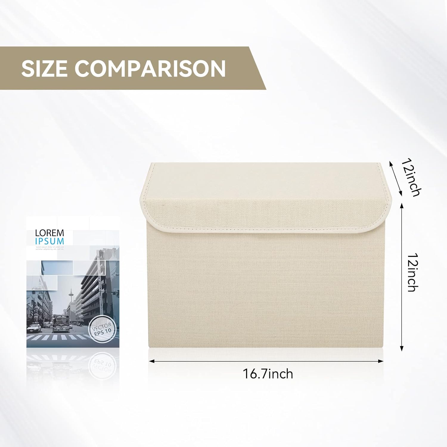 - 【Larger Dimension】 - To better serve our customers,we have increased the storage box dimension to 16.7x 12x 12”(42.5 x 30.5 x 30.5cm), which can allow you to hold much more stuff such as blankets, clothes, towels, magazines, yarns, CDs, and other stuff.
