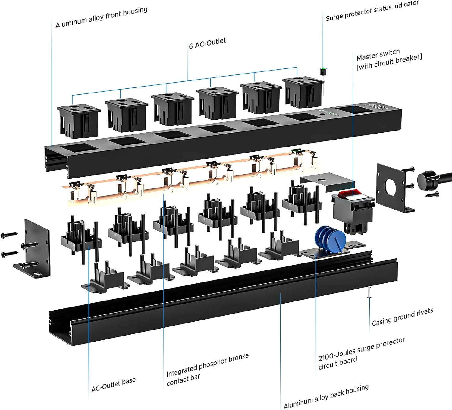 - Special Feature : Metal Housing, Mountable, On And Off Switch, SGS Listed, Surge Protection 2100J
