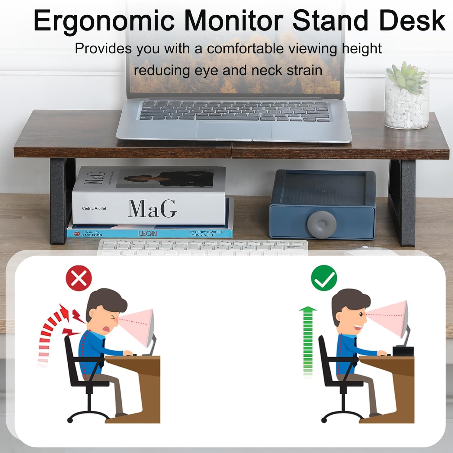 - 【Spacious Wood Surface】The rustic brown wood surface area is large and wide enough to hold your monitor/ laptop & docking station, it is smooth, comfortable, and trendy.