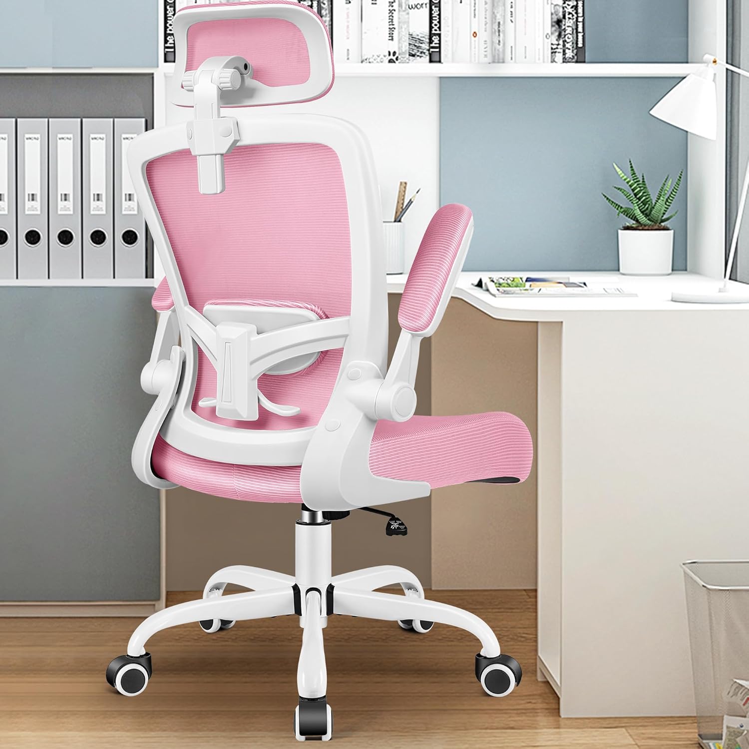 FelixKing Ergonomic Office Chair, Headrest Desk Chair Office Chair with Adjustable Lumbar Support, Home Office Swivel Task Chair with High Back and Armrest, Adjustable Height Gaming Chair(Pink)