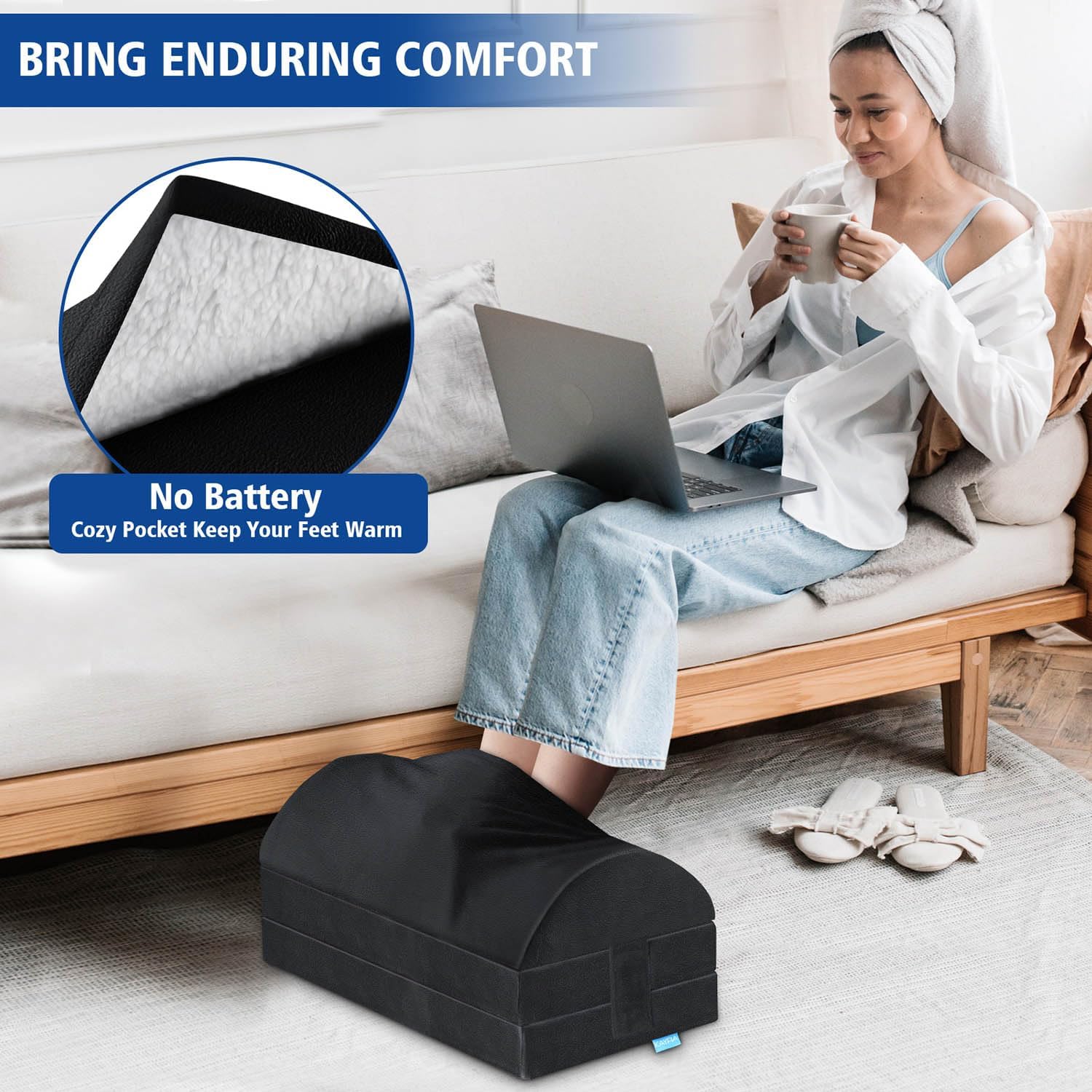 - [Cozy Footrest] Coming with a built-in plush pocket, foot rest under desk for office use can effectively alleviate the pressure and weariness of work through the soft touch, whilst ensuring warmth for your feet. Experience the comfort of stress release!