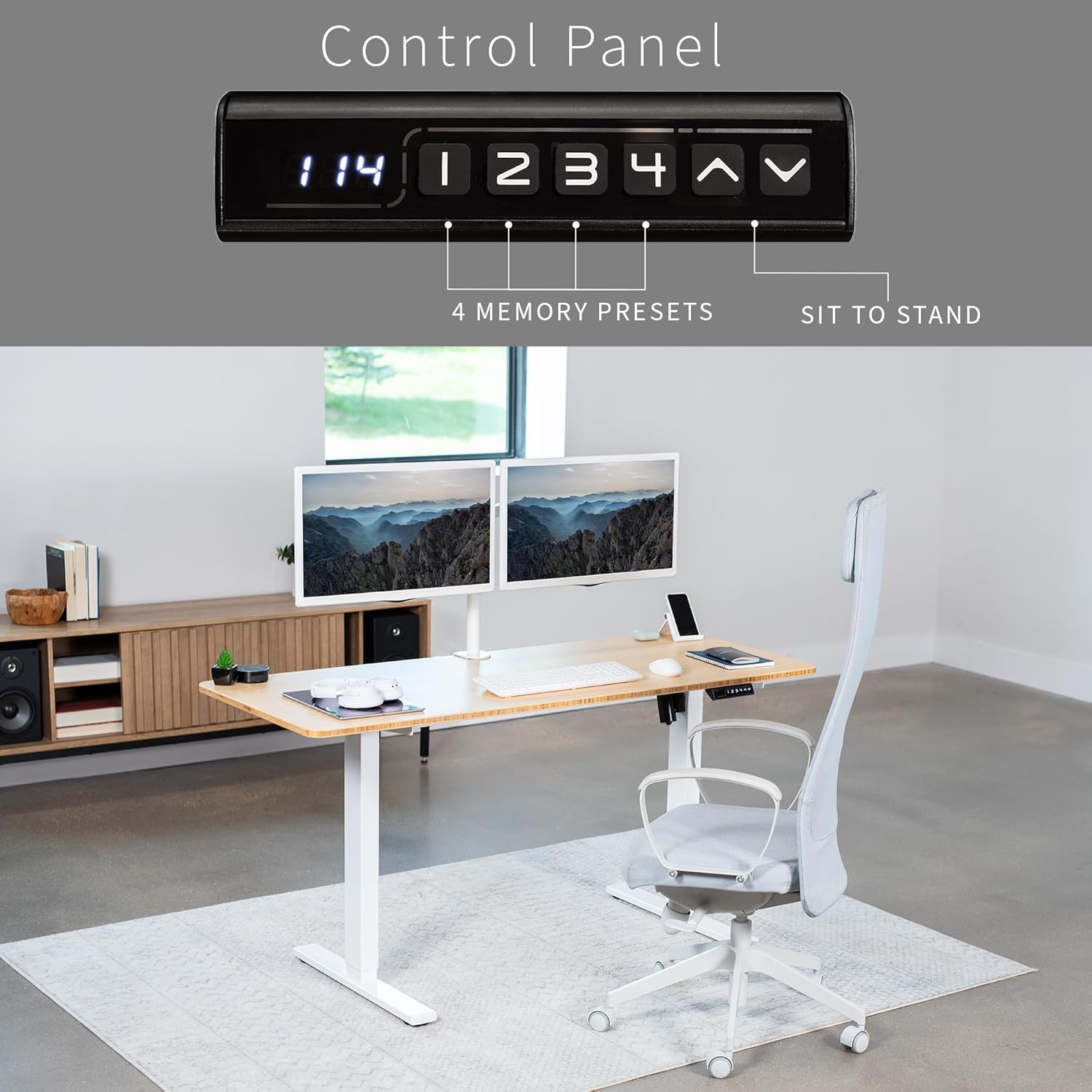 VIVO Electric 60 x 24 in Real Bamboo Standing Desk, Memory Height Adjustment, 1B Series, One-Piece Top, White Frame, DESK-KIT-1W6O