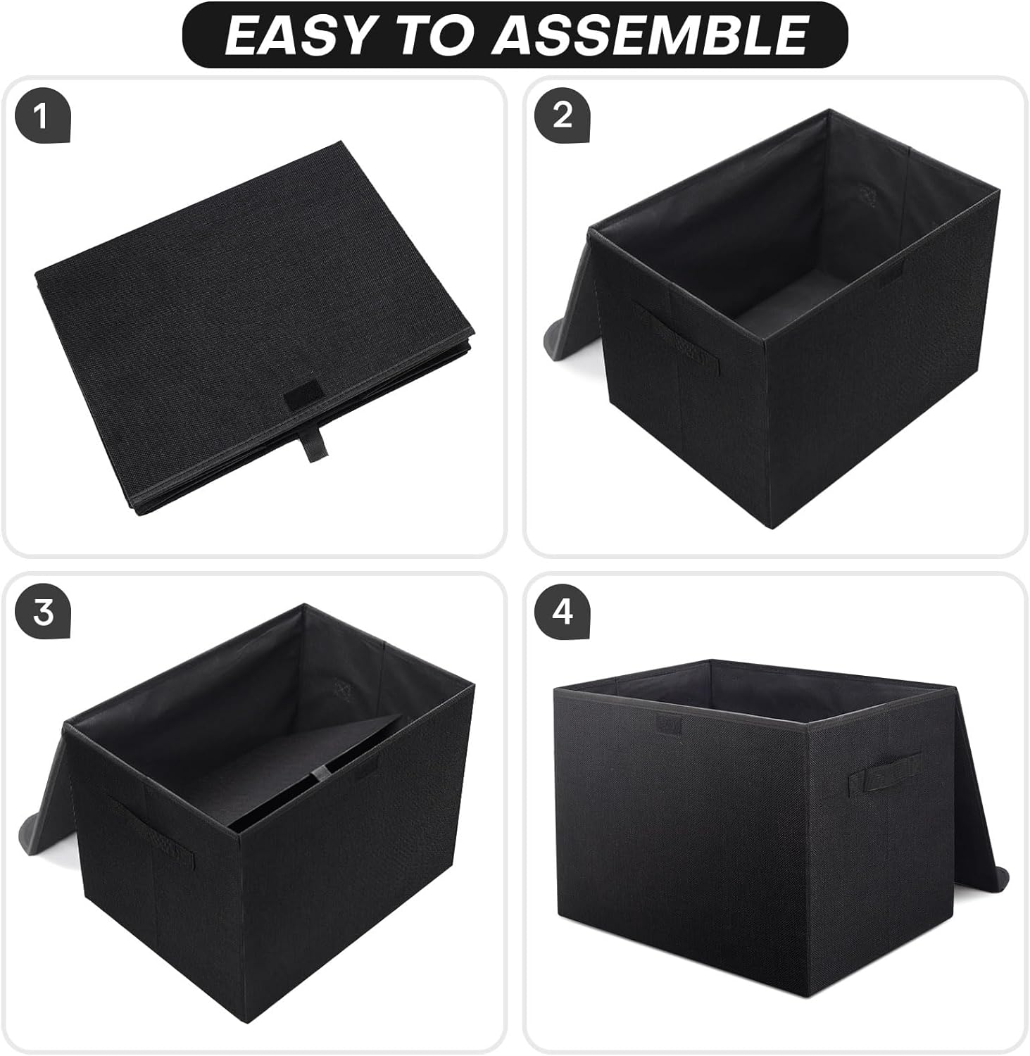 Large 22 Quart Linen Fabric Foldable Storage Bin Cube Organizer Basket with Flip-Top Lid & Handles, Clothes Blanket Box for Home, Office, Closet, Black, 4 Pack 14.6 x 9.5 x 9.5”