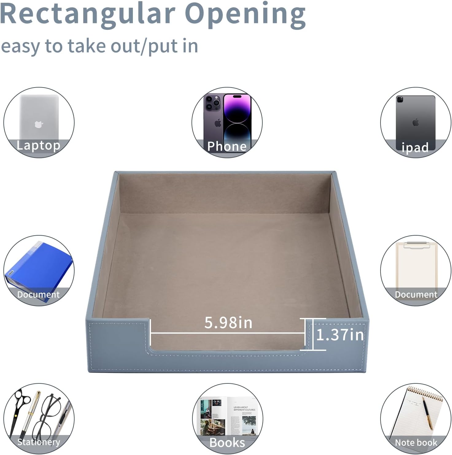 Leather Letter Tray, Office Supplies Desk Organizer for Mail Paper Files Magazines Jewelry Cosmetics,Luxury Letter Holder&Multipurpos Stackable Storage Box Office Desktop,Grey