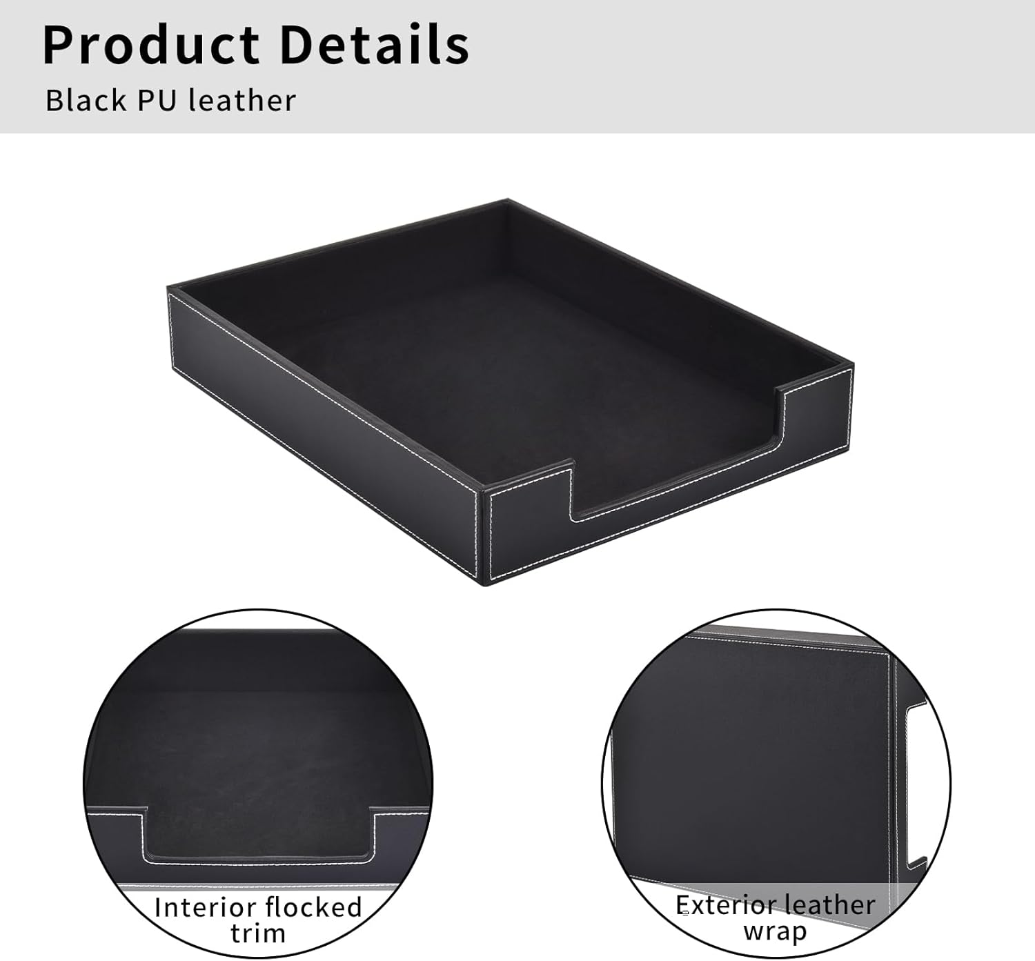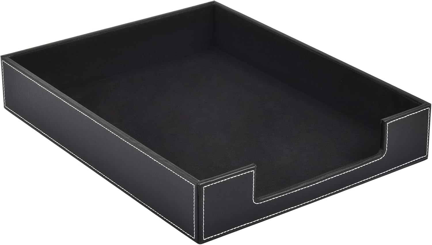 Leather 1-Layer Letter Tray Stackable File Document Tray,A4 Paper Case Rack Desk Office Supplies Organizer Holders,Desktop Organization, Pen Mail Magazine Storage Box(Black)