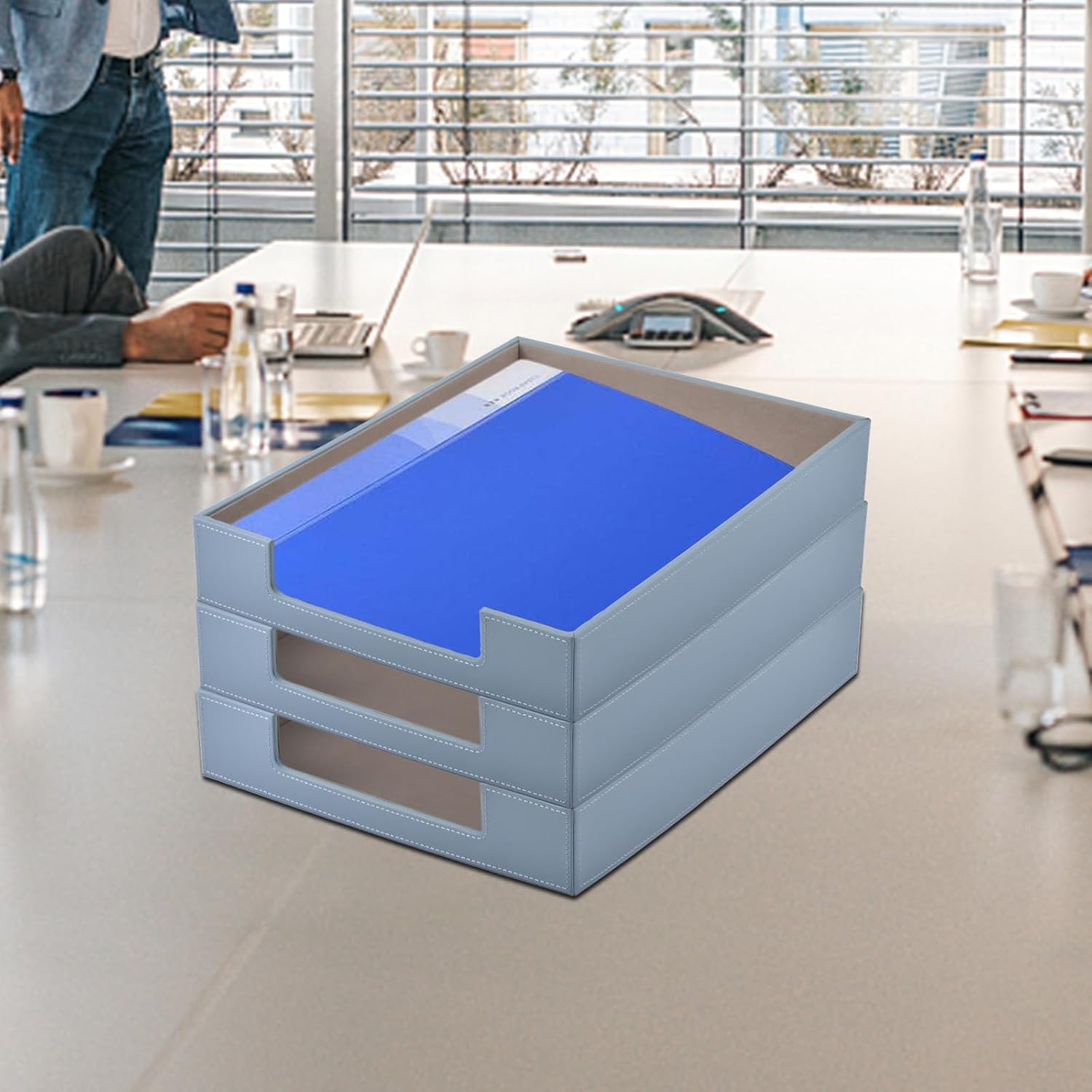 Leather Letter Tray,Stackable File Document Tray,Desk Organizer for Office Supplies,A4 Paper Case Rack,Desktop Organization,Pen Mail Magazine Storage Box (Grey)