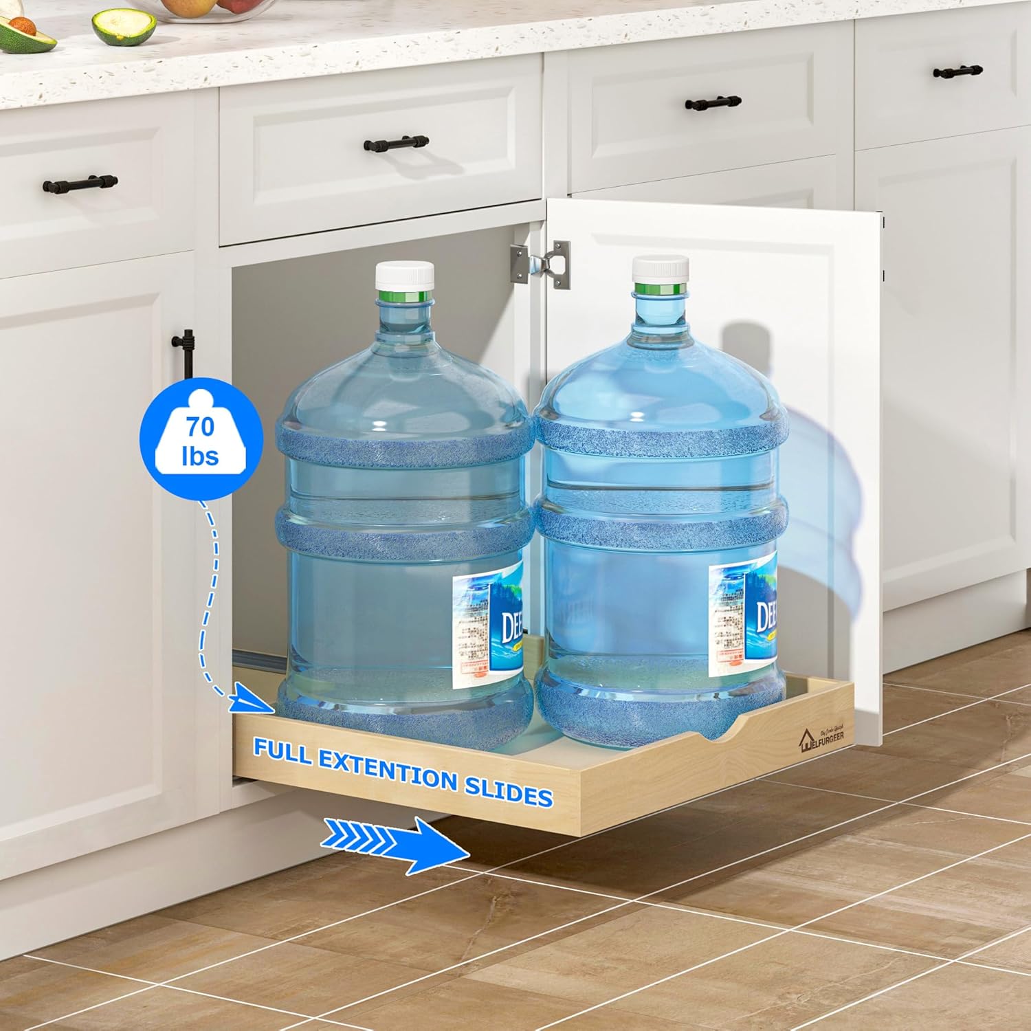 - ?�Solid Wood Material?‘Solid wood structure gives the pullout drawer for kitchen cabinet great stability and durability. Birch material is more in line with your noble and elegant style. The slide out cabinet organizer keeps your kitchen organized