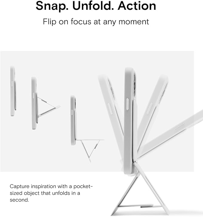 - Quick Setup & Ultra-Portable: Inspired by origami, this foldable phone tripod transforms from a slim card into a full phone tripod in seconds—no screws, loose parts, or assembly needed! At just 3oz, it’s the most compact and travel-friendly phone stand, easily carried in your bag or attached to a MagSafe case. Perfect for content creation and hands-free viewing: ideal for Self-vlogging, group vlogging, outdoor photography, video calls, browsing, online classes, or fitness.