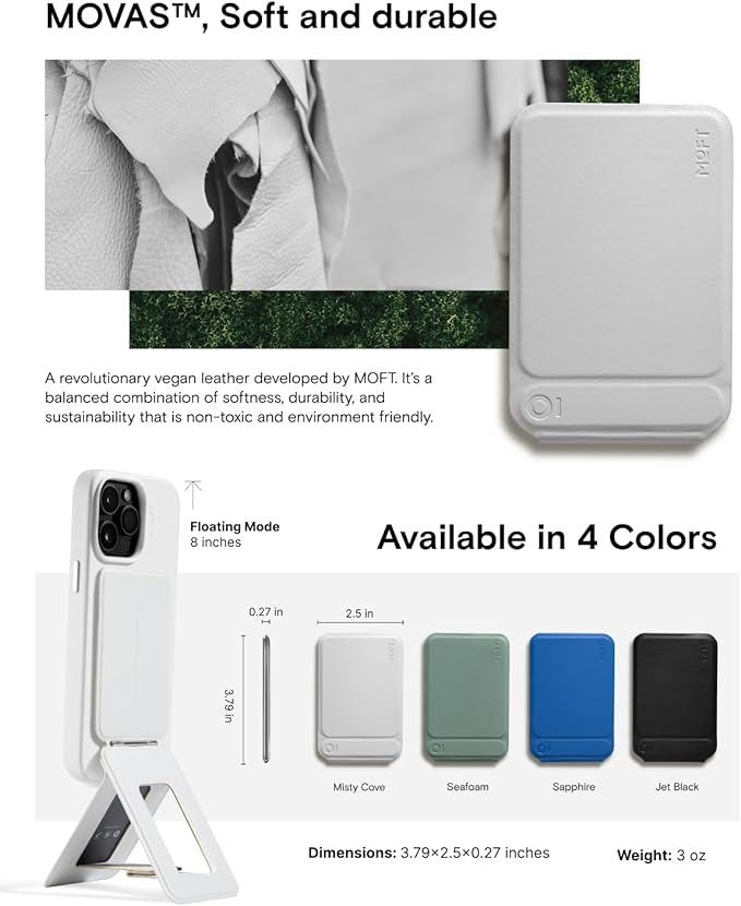 - Universal Compatibility: MOFT Phone Tripod fits iPhone 16/15/14/13/12 series and MagSafe cases. For other devices (such as Samsung) and non-magnetic cases, the phone stand can be attached using the included magnetic ring. Please check the product dimensions (3.8in X 2.5in X 0.27in) to ensure it fits the back of your phone without obstructing the camera. The slim design ensures your phone’s lenses stay unobstructed-perfect for Instagram-worthy shots at cafes, parks, or business events.