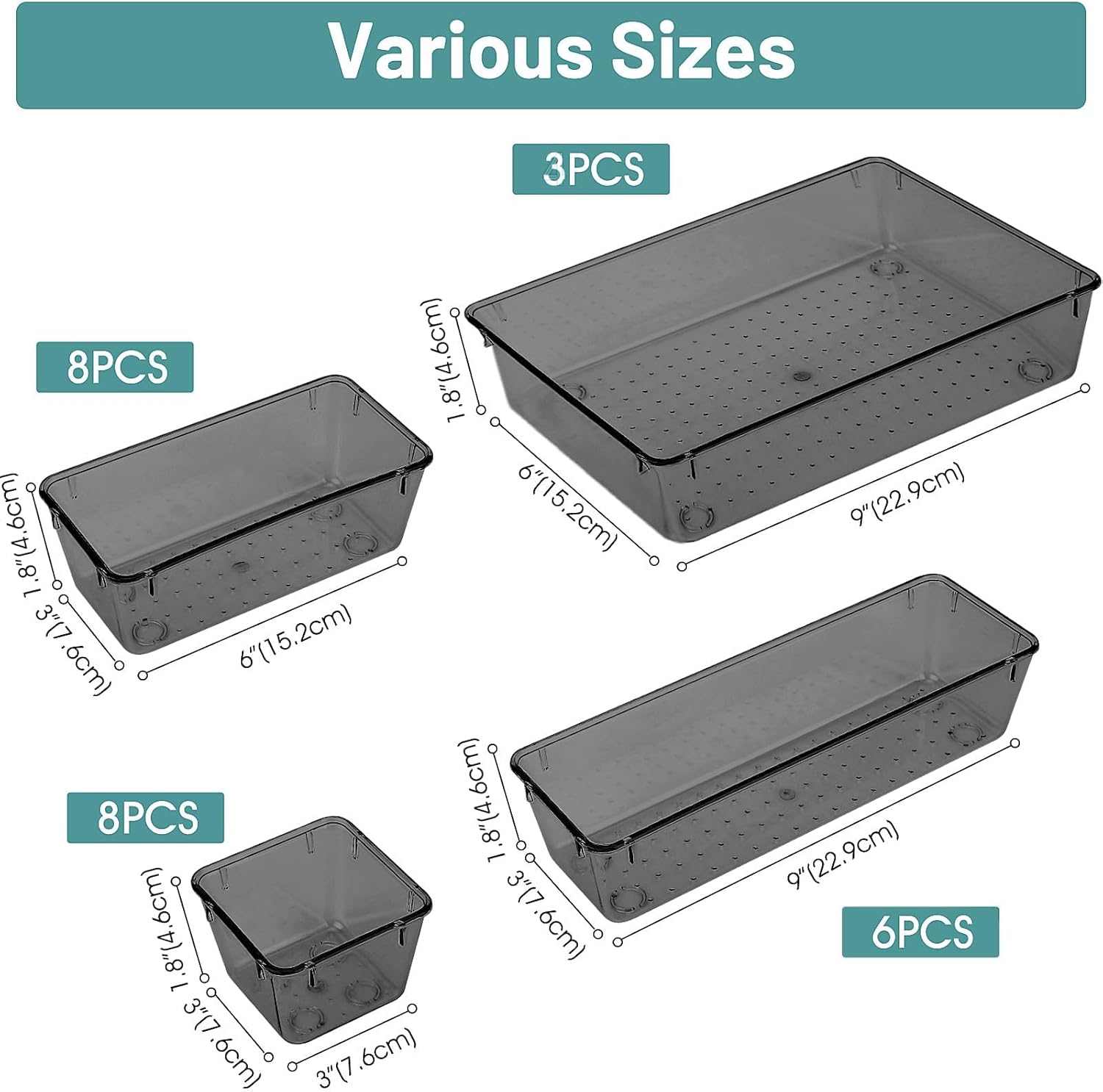 - Premium Material:The drawer organizer is made of non-toxic plastic which may be safely used. The transparent design makes it easy to find what you need quickly.