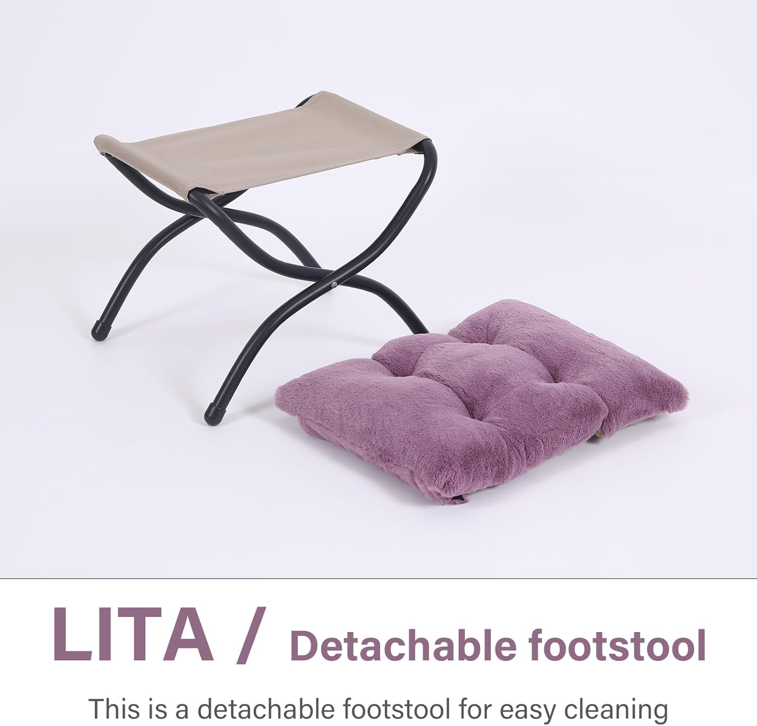 LITA Folding Upholstered Footrest Stool, Modern Small Portable Accent Ottoman with Detachable Thick Cotton Cushion Padded Sofa Stool with Metal Frame for Lazy Chair, Living Room & Bedroom