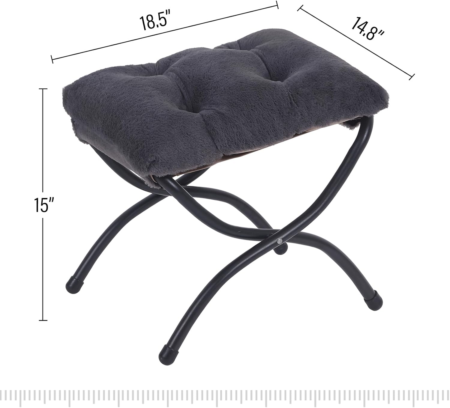 - REMOVABLE THICK COTTON CUSHION FOOSTOOL: This detachable cotton cushion is thick and soft, and it's fantastic. Whether you use it to relax your feet or sit on it to rest, you can feel very comfortable. The folding ottoman is perfect as a foot stool on its own, or as an ottoman when you're lying on a sofa or lazy chair,increasing your relaxation and comfortModern Folding Footrest Stool, Small Accent Portable Ottoman, Comfortable Metal Cotton Anti-Slip Footstool, Dark Grey
