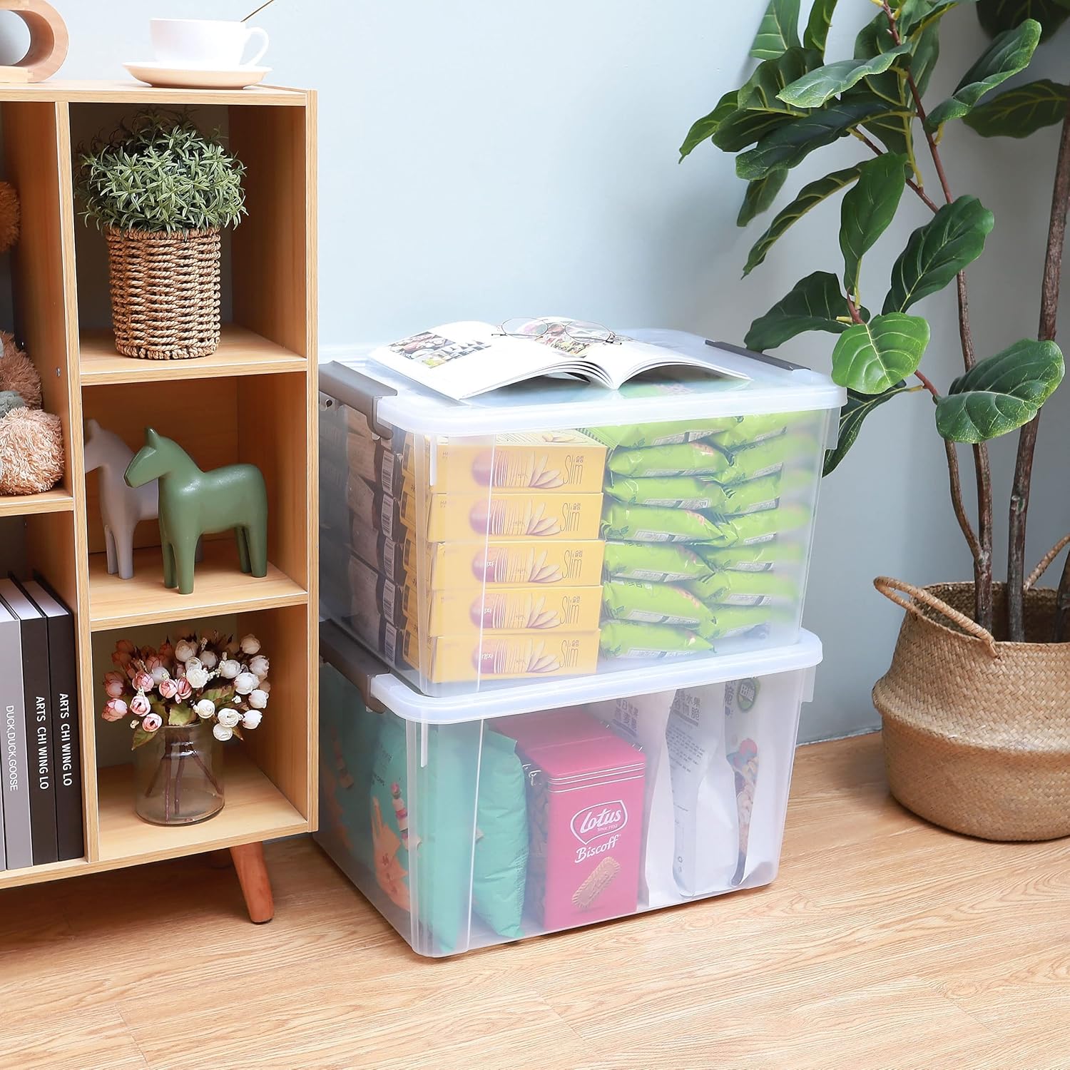 Citylife 6 Packs 58.1 QT Plastic Storage Bins with Lids Large Stackable Storage Containers for Organizing Clear Storage Box for Garage, Closet, Kitchen
