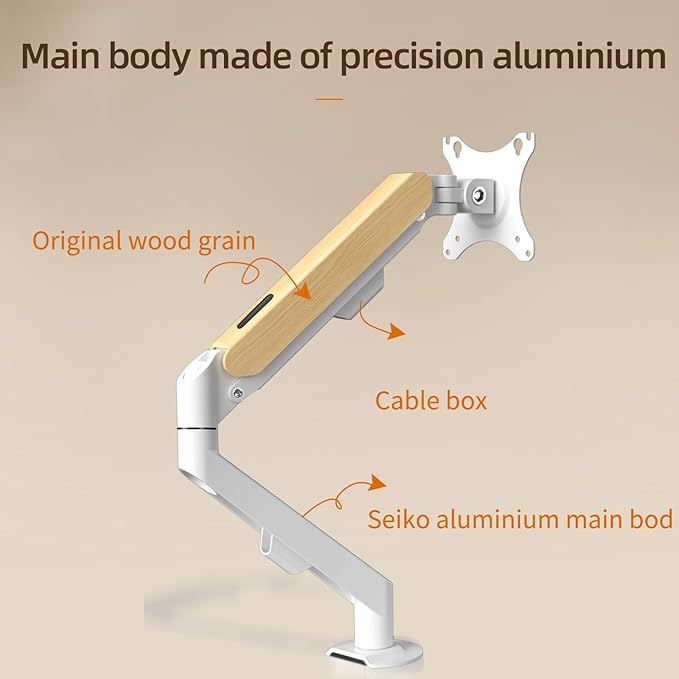 - High Quality: Sturdy construction and C-clamp/grommet base, the bionic cantilever rotates smoothly and hovers freely, ensuring the stability of your monitor. This monitor arm features cable management to keep your desktop clean and tidy for a more comfortable office environment