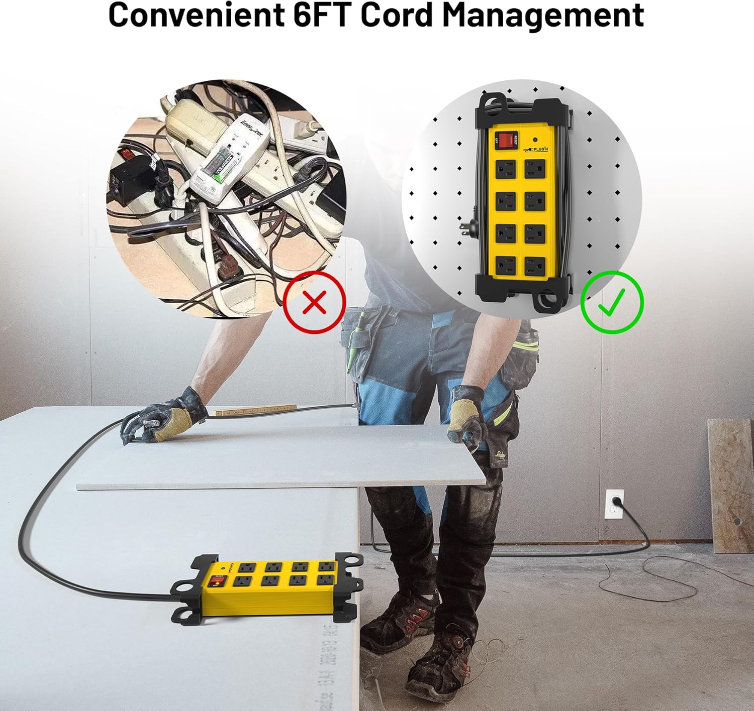 - Durable Housing:Damage-resistant aluminum yellow housing for power outlets is clearly identifiable in tools.Highly abrasion-resistant metal power strip protects circuits from fire,impact or rust