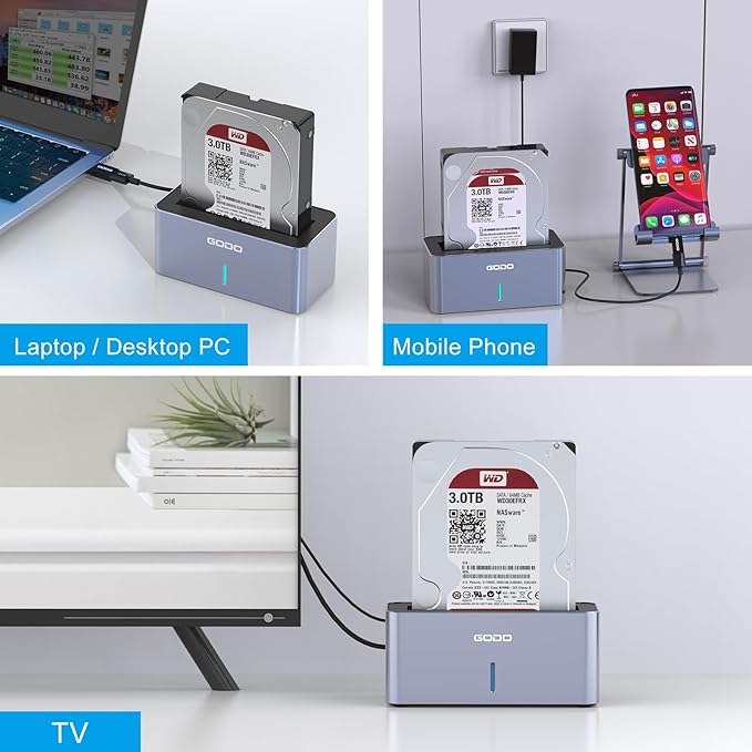 GODO SAS/SATA Hard Drive Docking Station Adapter, 2.5/3.5 inch USB 3.0 External SAS Enclosure, HDD SSD Converter with 12V/2.5A Power Adapter 20TB 10Gbps Tool Free…
