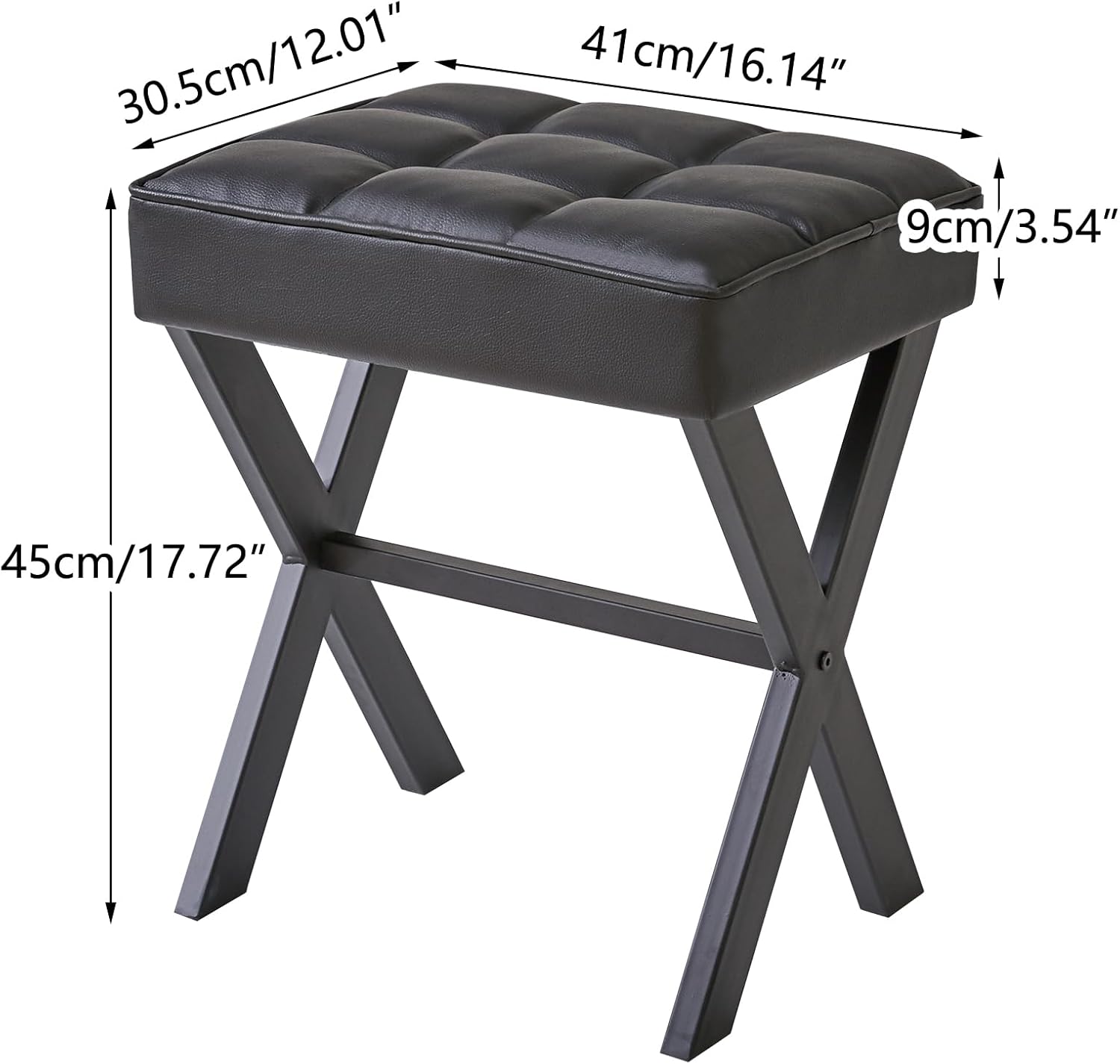 IBUYKE Square Makeup Stool with X-Leg Foot Rest, PU Footrest, Ottoman Seat Vanity Stool, Multi-Use as Small Side Table, for Bedroom, Living Room, Black LG-71B
