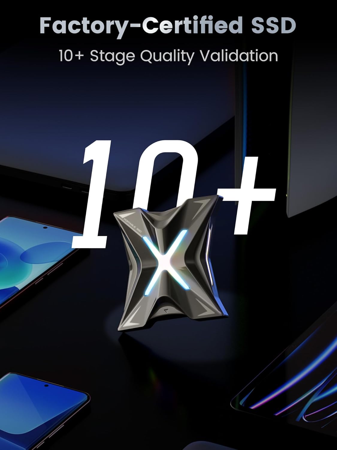 - Sleek Magnetic X-Design:Move Speed RX20 SSD clips onto laptop lid as a style statement during client meetings, with hidden magnets built into the X-shaped edges. The spacecraft-inspired grooves catch light subtly like a luxury watch bezel, while the soft RGB glow adds a tech-savvy vibe without overwhelming your workspace