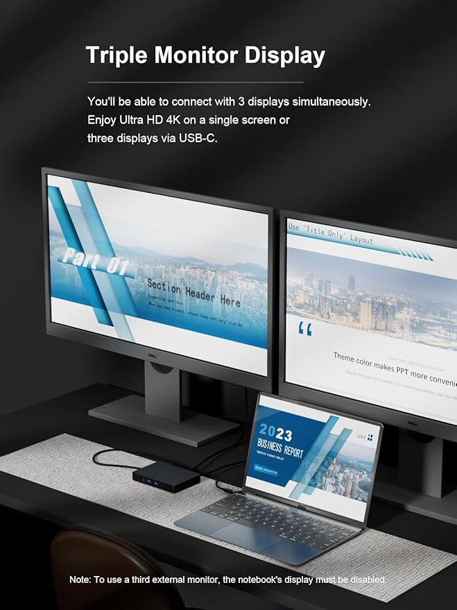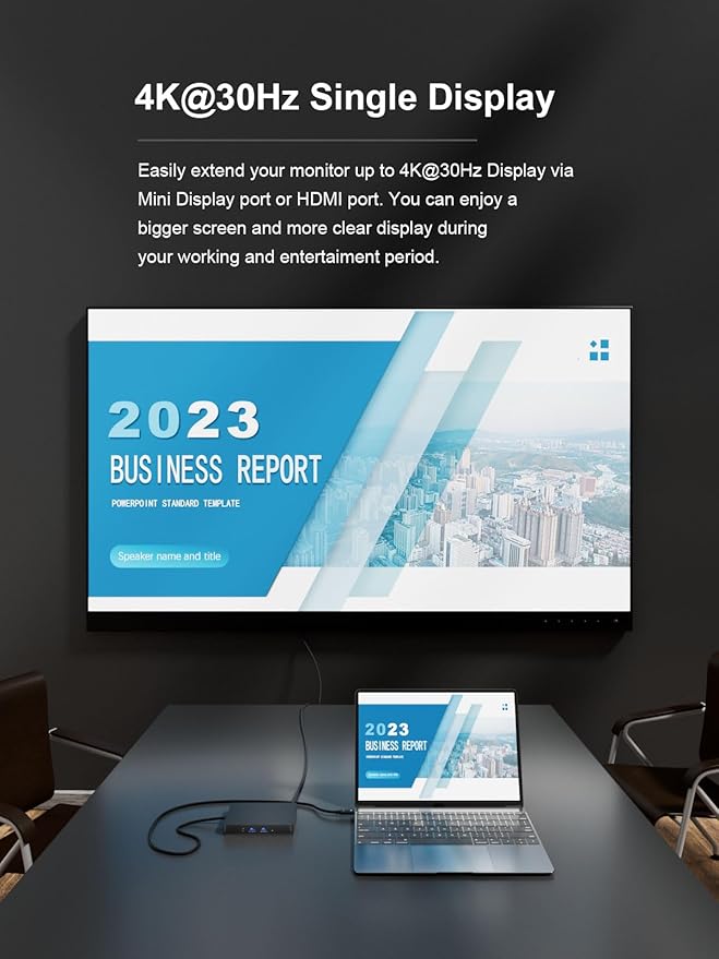 - 【Triple Display Docking Station】This docking station can support triple display on Windows System's MST and SST(Mirror & Extend Mode), Single HDMI or MiniDP port support up to 4K@30Hz;Dual display support up to 2K@60Hz;Triple display support up to 2K@60Hz.