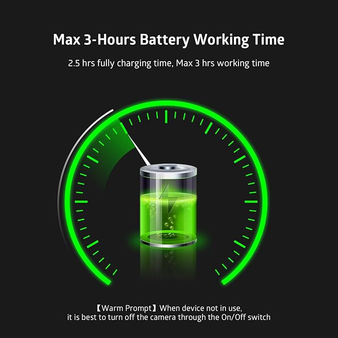 - 【Max 3-hours Battery Working Time】Built-in a rechargeable 1500mA lithium battery, 2.5 hrs fully charging in shutdown state and get max 3 hours working time.【Warm Prompt】The device is not fully charged when it leaves the factory.