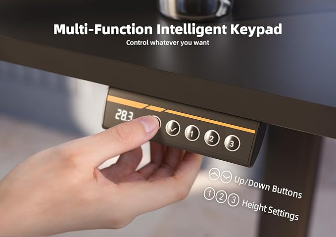 - Smooth Electric Height Adjustable: The stand up desk features three preset buttons to customize your desired heights from 28.3" to 46.5"