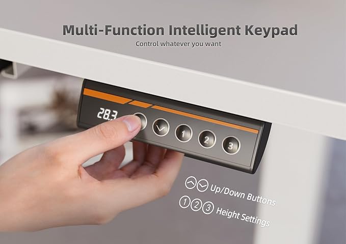- Adjustable Height: The electric desk enjoys the freedom to your preferred height, ranging from 28.3 inches to 46.5 inches. The sit to stand desk is equipped with three preset height adjustment controllers, allowing you to customize and save your height preferences, and easily switch between them
