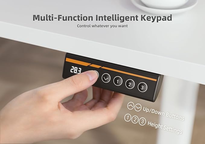- Smooth Electric Height Adjustable: The stand up desk features three preset buttons to customize your desired heights from 28.3" to 46.5"