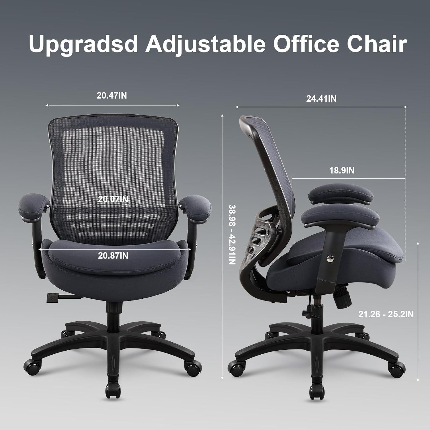 400lbs Ergonomic Office Chair with Double Seat Cushion and Soft Armrests for Executive Computer Desk with Built-in Lumbar Support(Gray)