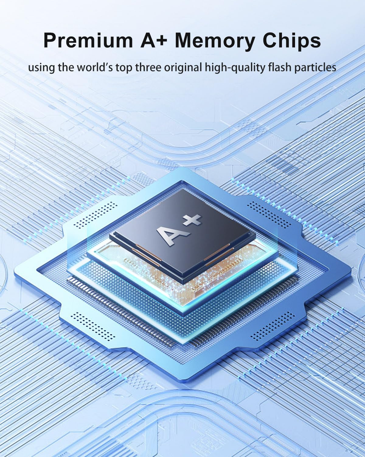 - Versatile use: Backed by top-quality A+ memory chips, the external solid state drive offers sustainable performance for handling high-res photos, 8K video editing, games, graphic designs, content creations, and more