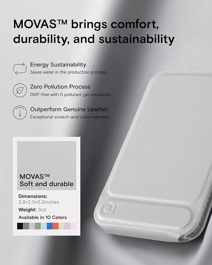 - Soft and durable - Made with MOVAS, the revolutionary vegan leather, that combines a silky touch and resistance to everyday dirt and scratches.