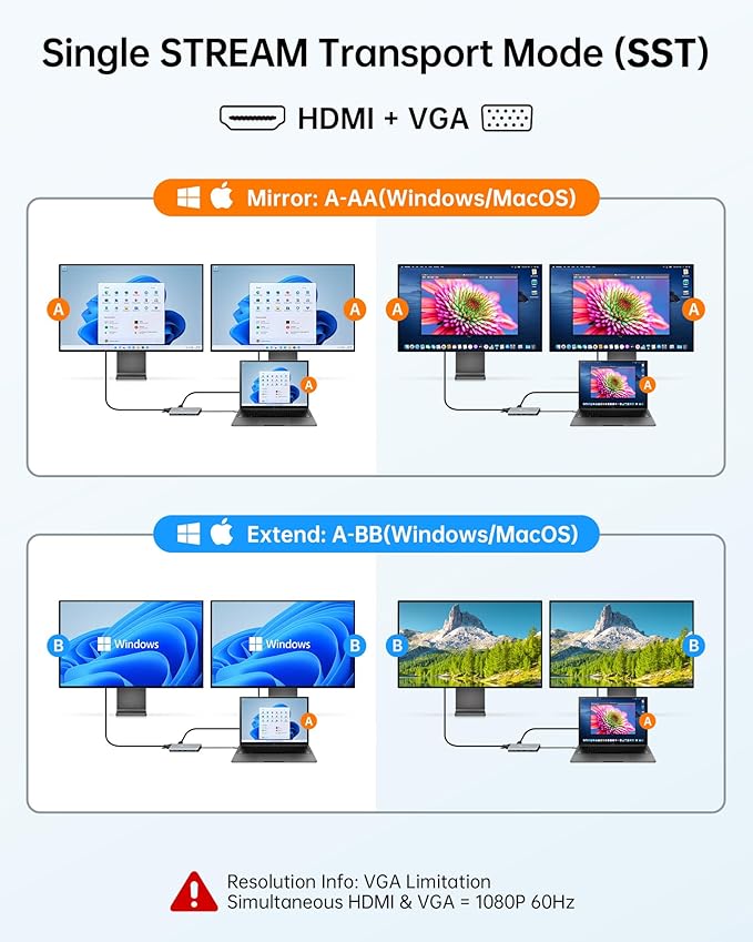 - ๐ฆ๐๐๐ป๐ป๐ถ๐ป๐ด 4K@60Hz HDMI & VGA Output: Easily extend or mirror your display with the USB C to HDMI adapter supporting 4K@60Hz resolution, or connect older displays via the VGA port with Full HD 1080p, making this USB C hub HDMI ideal for work presentations, streaming, or multitasking.