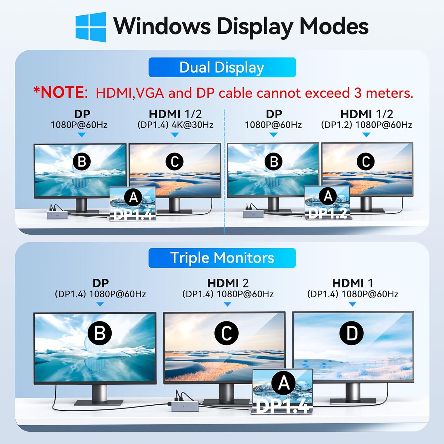 - Laptop Docking Station Dual HDMI(4K)&Triple Monitor DP(1080P): This USB C Docking Station Dual HDMI Splitter for dell laptop will help you easily to achieve dual-monitor and triple-monitor display, make your work/life more efficient; Please Note Before Purchase: Only the built-in usb c port of your laptop is the fully functional port, you can use the dual/triple monitor function, if you are not sure, please get in touch with us, we are happy to help you to check if this docking station is compatible for your device
