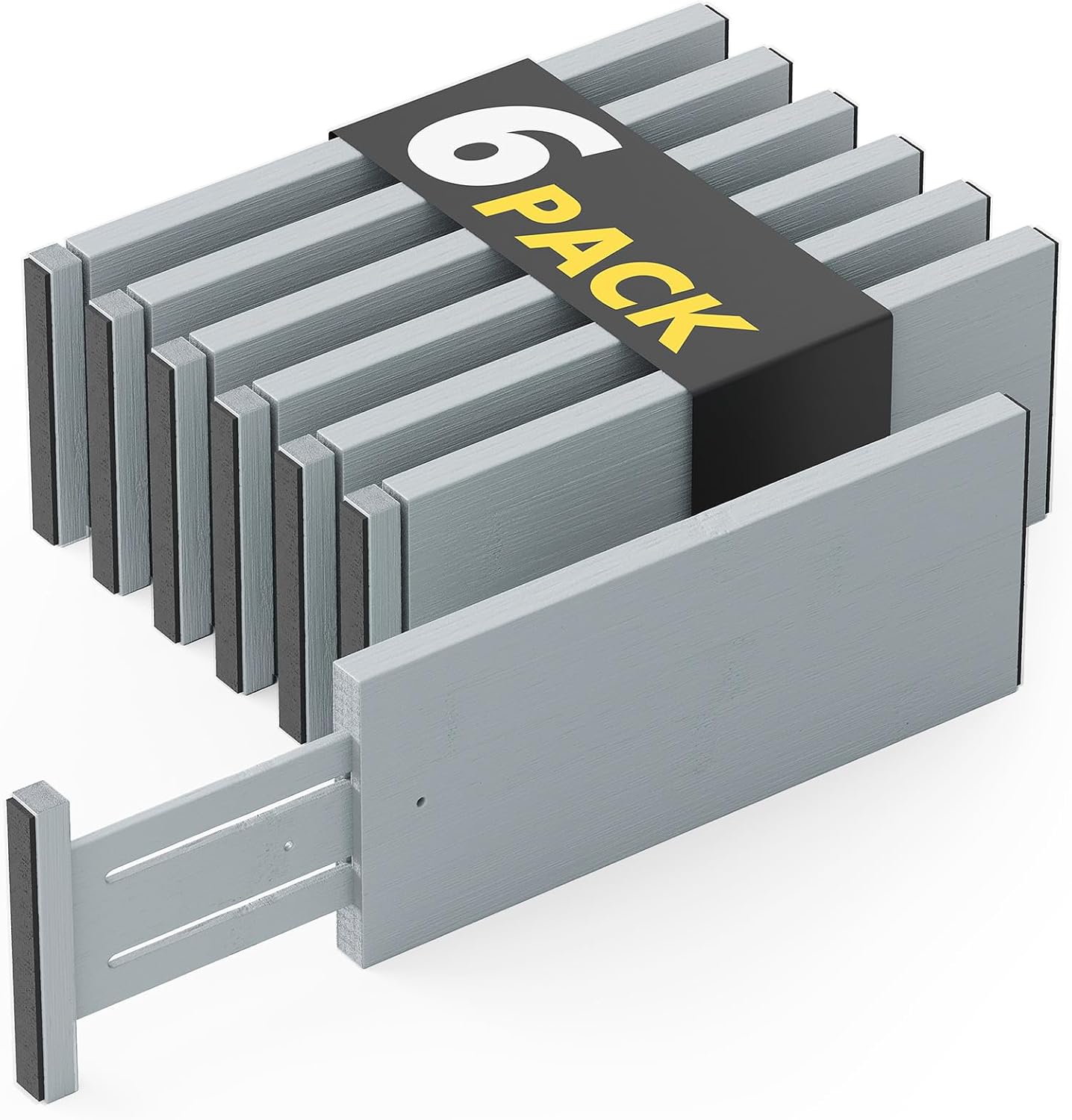 SpaceAid Bamboo Dresser Drawer Dividers 6 Pack, 4.65“ High Adjustable 12.5“-17” Drawer Organizers, Expandable Organization for Clothing, Clothes, Dressers, Gray