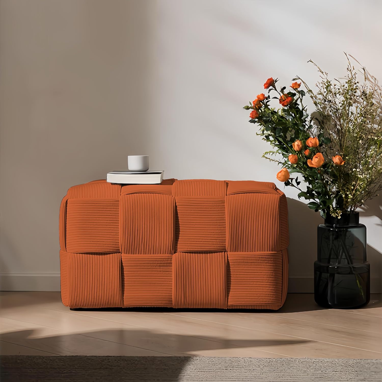Ottoman Foot Rest Soft and Comfortable Ottoman Square Corduroy Woven Design Sofa Stool (Orange-L)