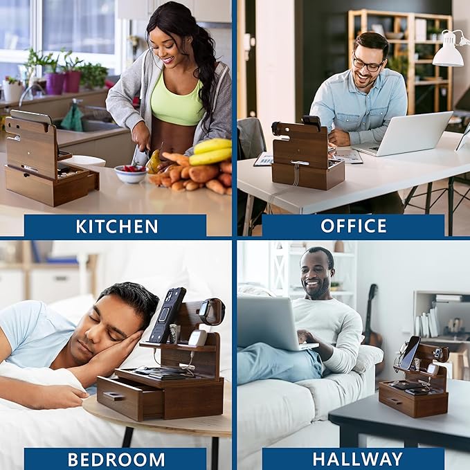 - Gifts for Men and Women - Ideal for birthdays, anniversaries, or Valentine's Day, the wood docking station is a top gift for husband or wife. This stylish charging dock enhances any home office, whether for a mother, papa, boss, brother, guy, or son.