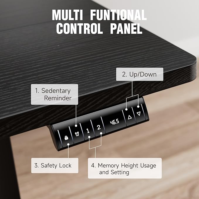 - Memory Preset: The electric desk comes with a memory mode function that stores your preferred desk heights; With just one touch, you can easily switch between sitting and standing positions