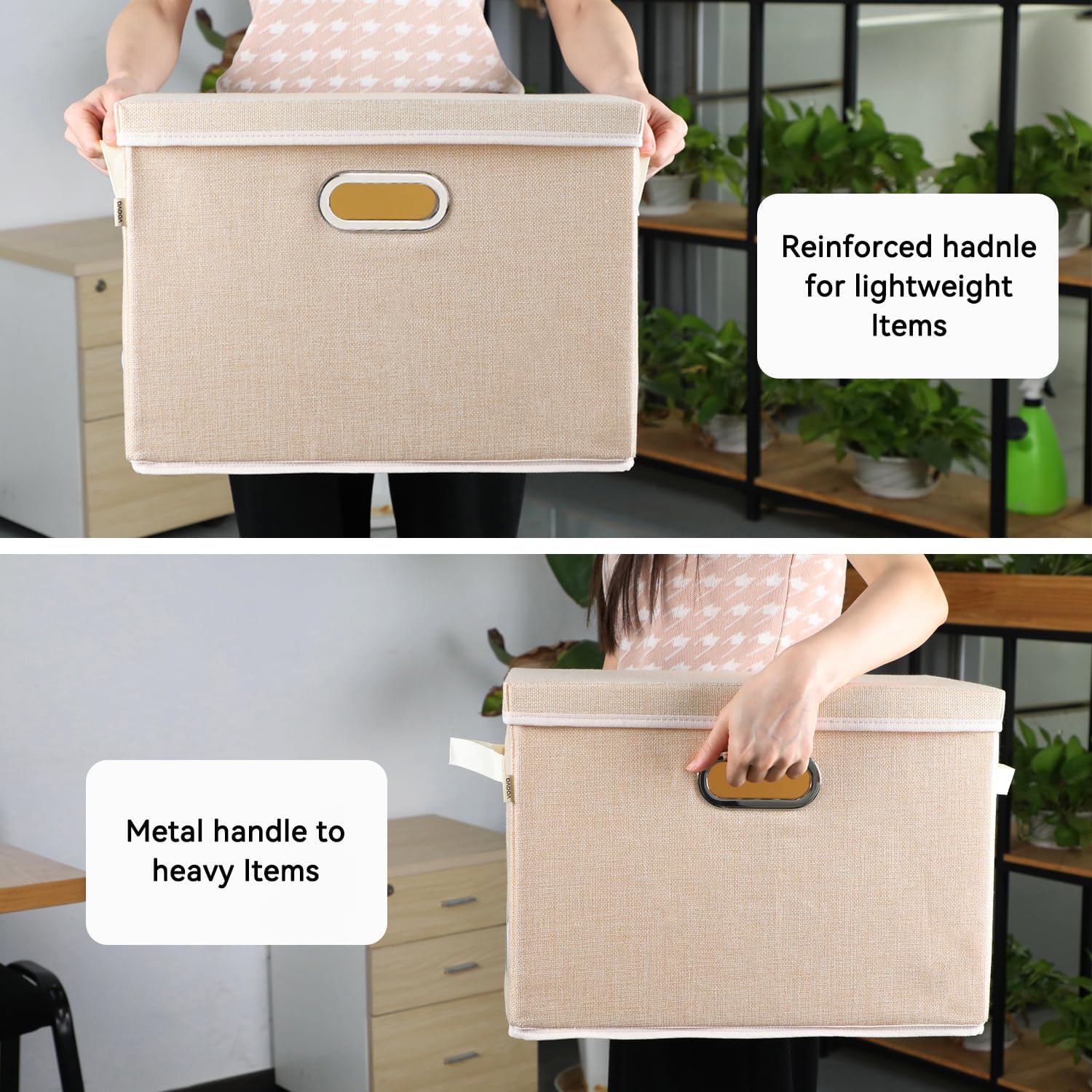 - 【Premium Quality】 This fabric storage bins with lids are made of durable and breathable line fabric, eco-friendly without odor. Inner of storage organizer box is constructed with heavy-duty hard cardboard will not collapse or deform, each storage bins can hold the weight up to 30 lbs, you can stack them one by one.