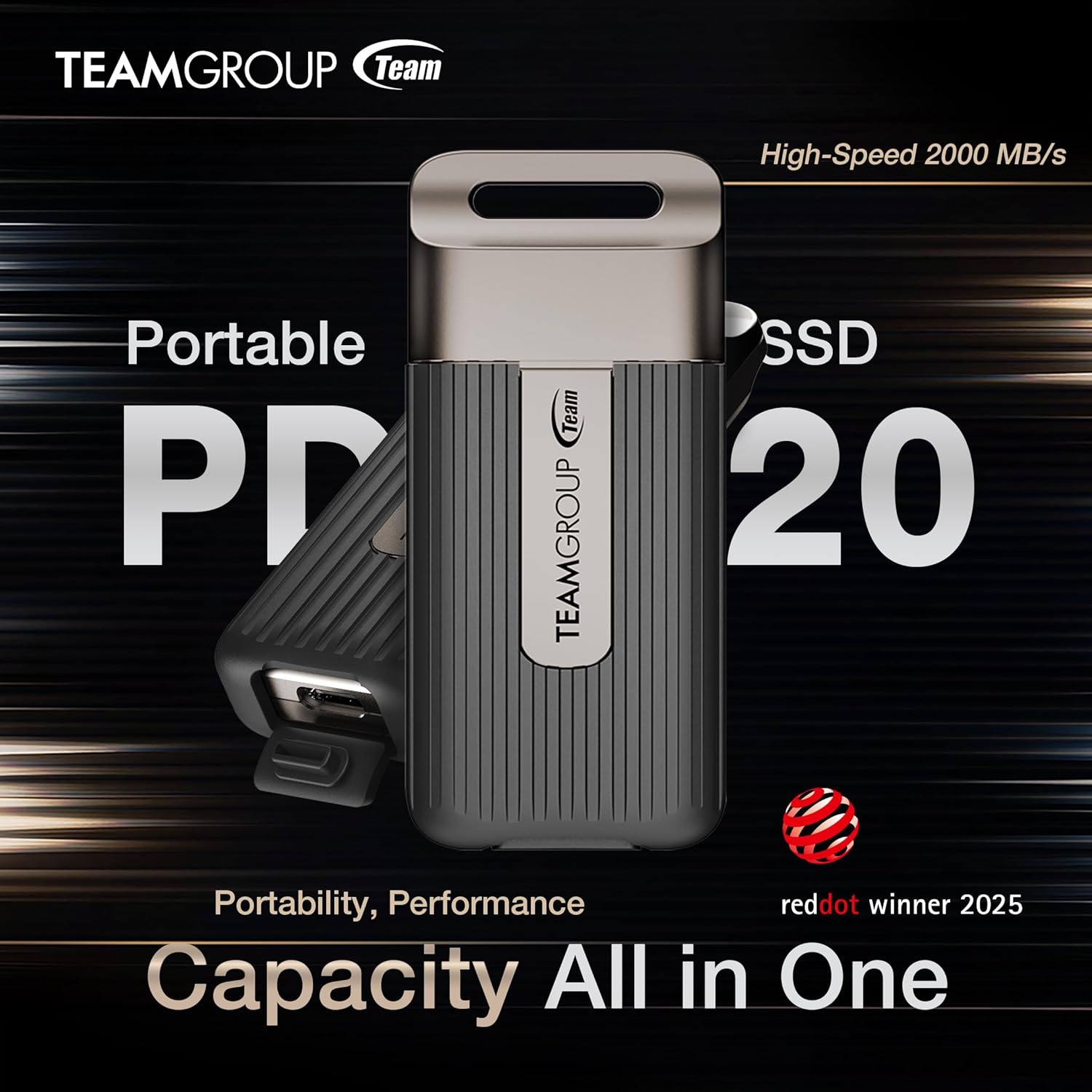 TEAMGROUP PD20 4TB Portable External Solid State Drive SSD Read up to 2000MB/s USB 3.2 Gen2x2 Type-C Waterproof Dustproof IP54 TPSEG5004T0C102