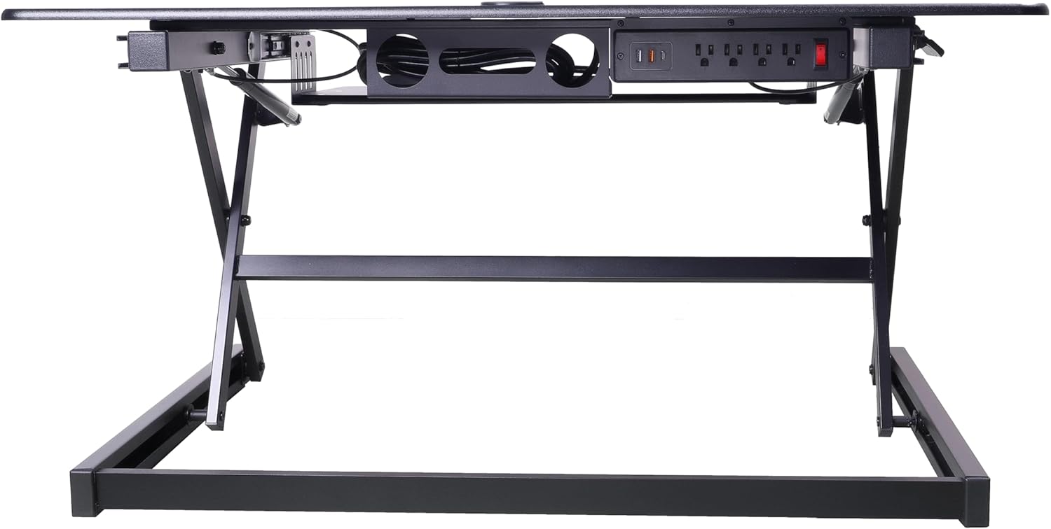 Rocelco 40" Height Adjustable Standing Desk Converter with AC Outlet and USB Charger - Gas Spring Sit Stand Up Dual Monitor Tabletop Riser Workstation - Large Keyboard Tray - Black (R DADRB-40-ACUSB)