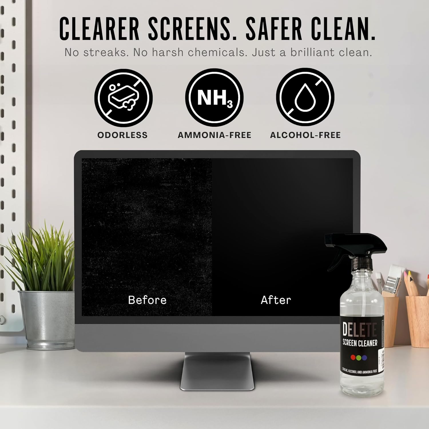 - Ammonia and Alcohol Free Formula: Gentle yet effective, this computer monitor cleaner is odorless and contains no alcohol or ammonia, helping protect screens from damage. Safe for frequent use on delicate device displays like OLED, LCD, and touchscreens