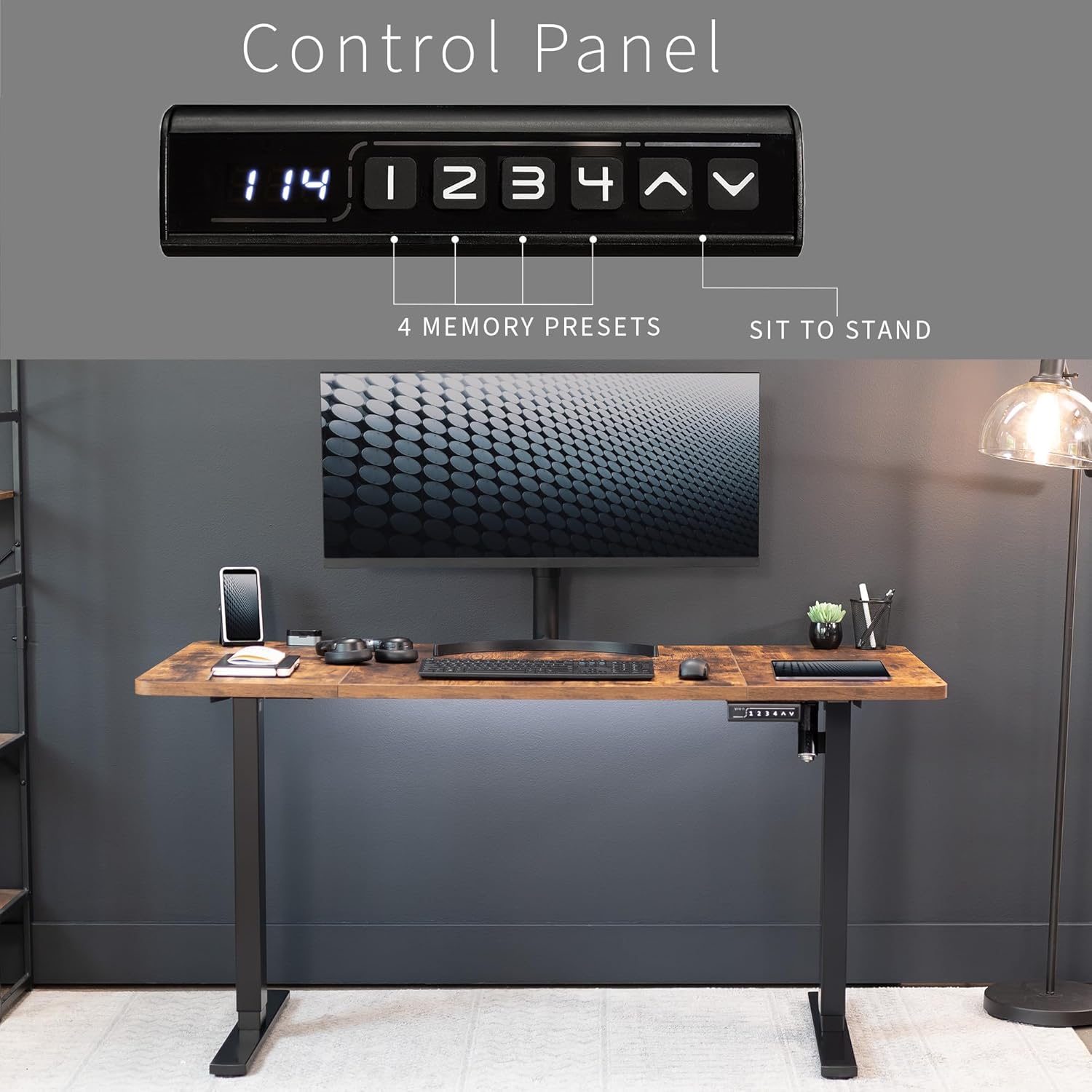 VIVO Electric 60 x 30 in Rustic Standing Desk, Memory Height Adjustment, 1B Series, Vintage Brown Top Black Frame, DESK-KIT-1B6N-30