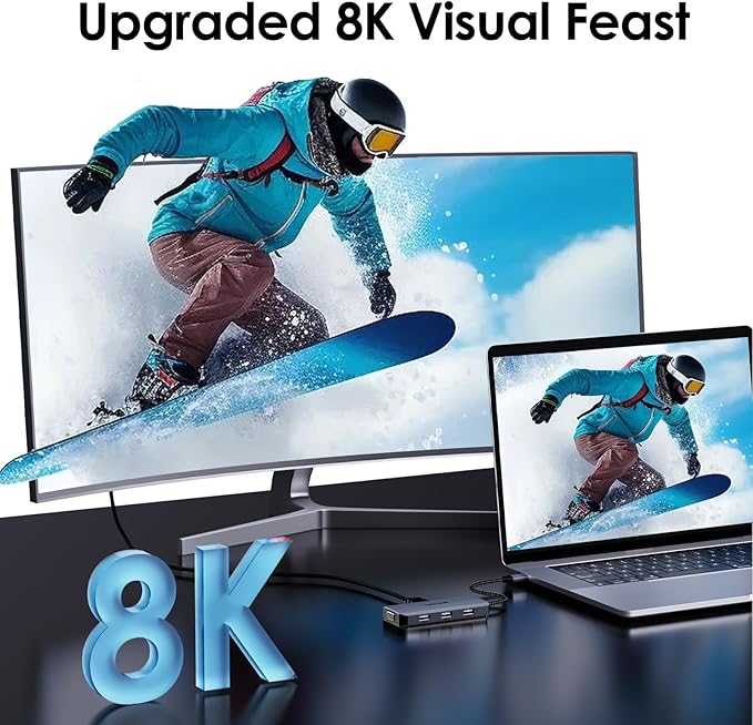 - Triple 4k Display Docking Station - This 4k triple display docking station for windows computer only. This will be an HD experience! It equipped with dual DP ports and an HDMI port, it supports max single 8K@60Hz, dual 4K@60Hz+4K@144Hz or triple 4K@60Hz video output under DP1.4&DSC1.2. Ideal for video editors, image designers, 8K game players, etc
