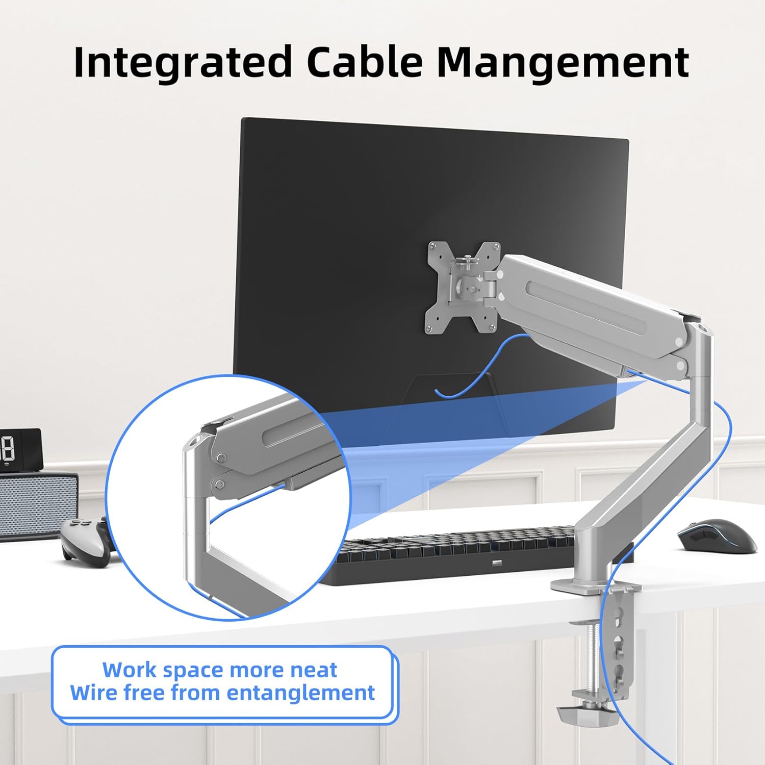 Suptek Single Monitor Mount Adjustable Gas Spring Monitor Arm Desk Mount Stand Fits 17 20 22 23 24 26 27 32 33 inch Monitors,Holds up to 22 lbs,Silver(MD18S)