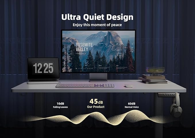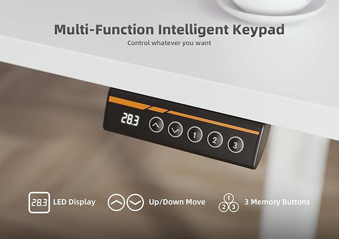 - Height Adjustment: The adjustable desk is equipped with an advanced electric lift system. The height adjustment range is from 28.3 inches to 46.5 inches, and 2 different heights can be preset. The powerful motor ensures a smooth and low noise lifting process, quickly adjusting to your comfortable height.