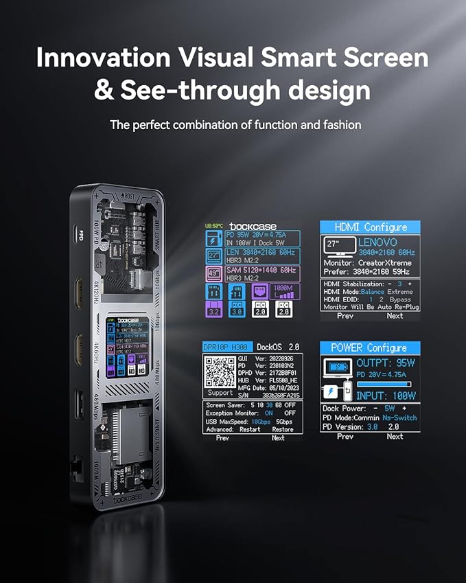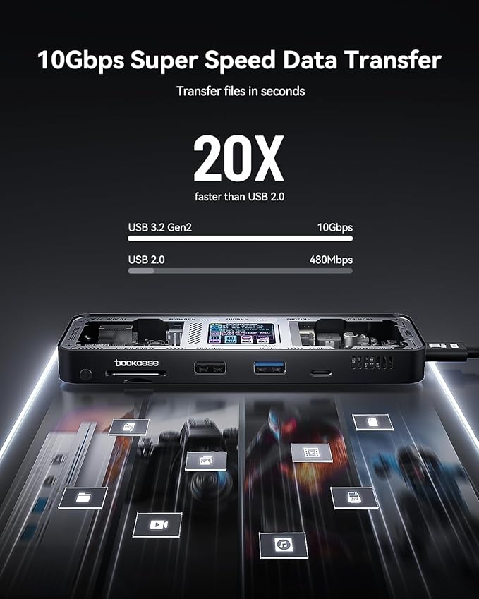 - Dockcase Smart USB-C Hub: 10-in-1 Explorer Edition is the ideal hub for your workspace. With its customizable display and multiple ports, it effortlessly transforms your laptop or desktop into a fully equipped workstation