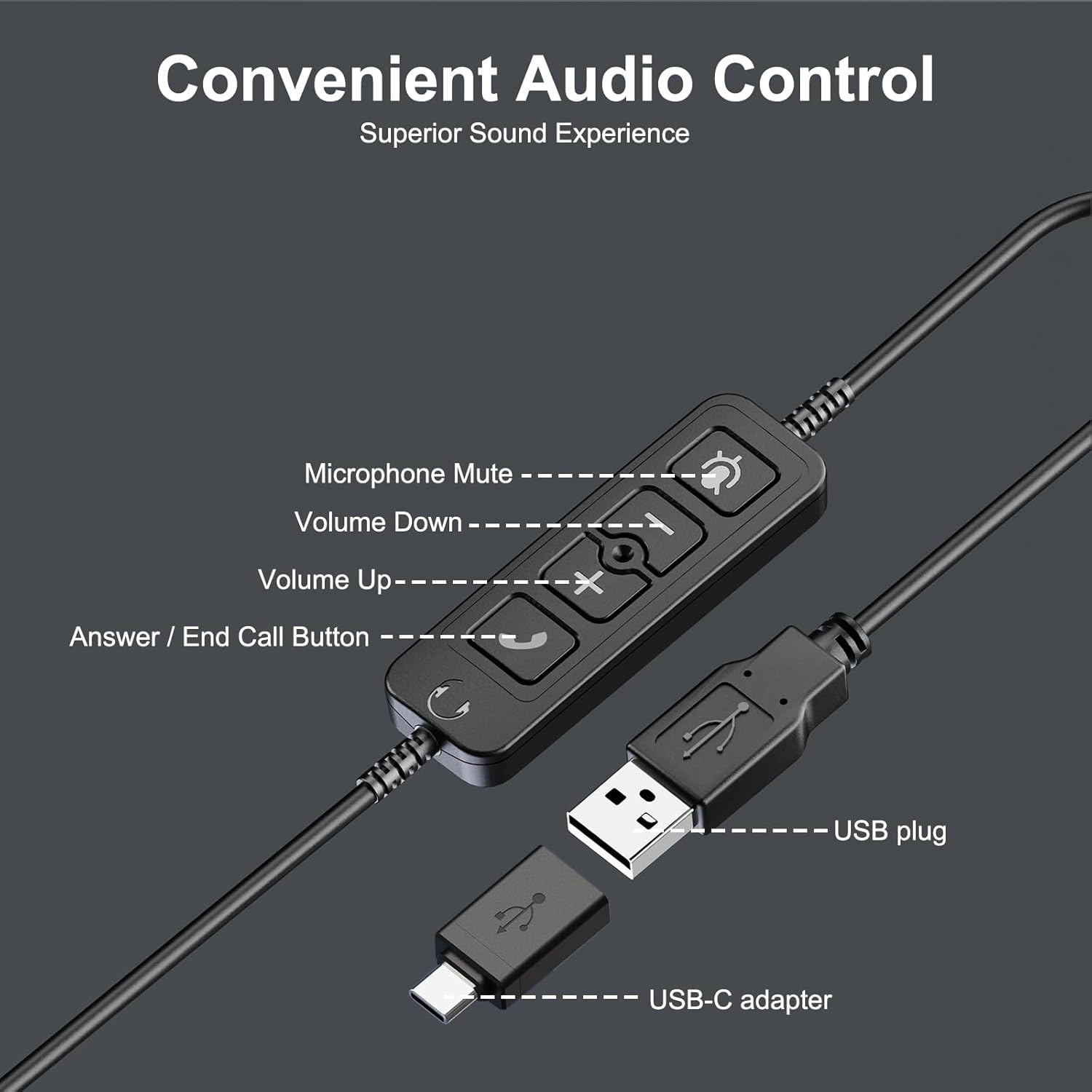 - 2 IN ONE COMPATIBILITY: Enjoy a hassle-free experience with the computer headset featuring USB Type-A and USB Type-C options, wide compatible with different devices and seemless switch between PC, laptops, Smartphones and Mac. No need driver installations - simply plug the headset into your devices and you're ready to go.