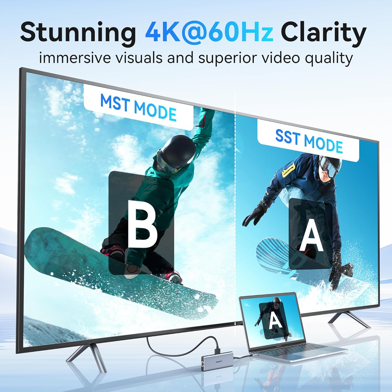 - 4K@60Hz HDMI to USB C hub and USB C To Gigabit Ethernet: This usbc hub allows you to achieve up to 4K@60Hz (3840 x 2160) cystal-clear image,down compatible with 2K@120Hz, 1080P.This macbook air accessories adapter allows to mirror or extend your laptop screens or monitors by connecting monitors tvs projectors with hdmi ports.Please note that your usb c device’s usb c port must supportsvideo output (display port alt mode or thunderbolt),otherwise it will won’t output images on monitors or screens. Equipped with 1000Mbs Gigabit Ethernet port allows to to enjoy stable wired network for your work